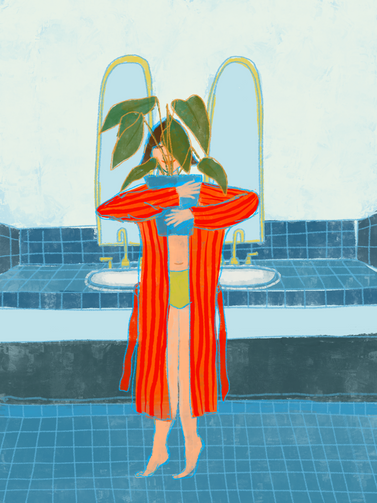 Nora waters her plants in the shower and she wonders what it would be like to live near the ocean — to hear water making noise all the time. Maybe this weekend she’ll find a lake and jump in and hear the splash. But she’ll make a note about the ocean and see if it can come true someday.